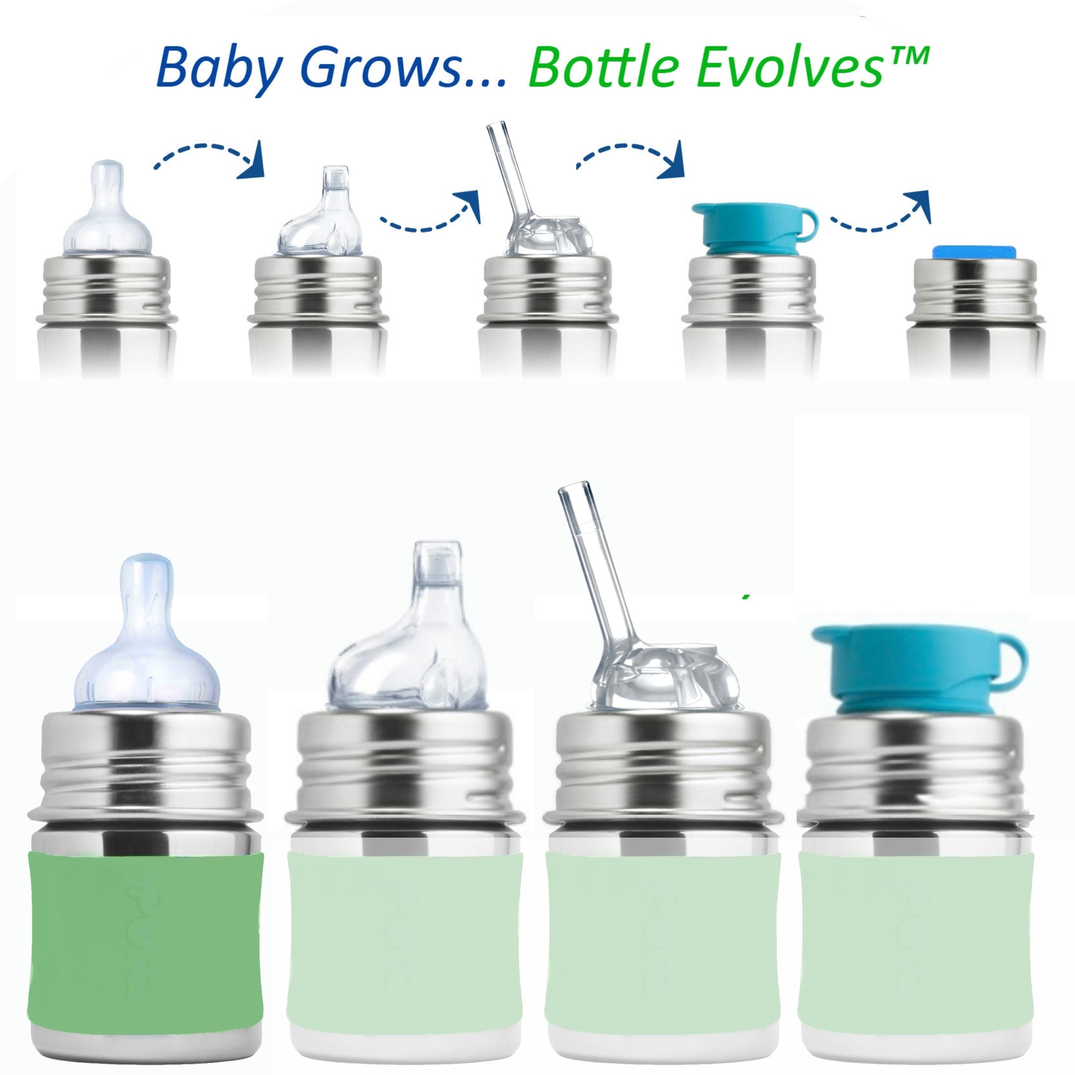 Any Pura silicone lid is suitable for any Pura bottle – these are durable bottles that “grow” with the baby! With the help of a replaceable tops, the bottle can easily turn into a sippy/straw bottle, a jar for snacks or a sport bottle.