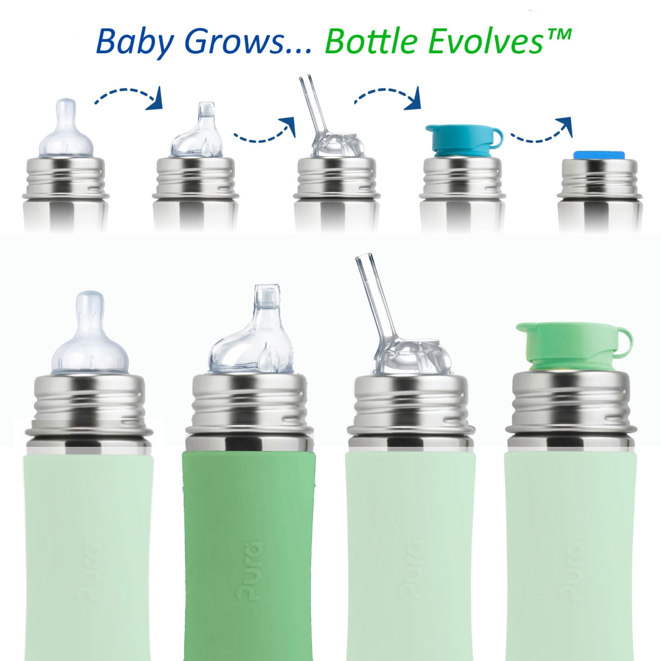 Kõik Pura silikoonkaaned sobivad kõigile Pura pudelitele – need on vastupidavad pudelid, mis “kasvavad” koos lapsega! Tänu vahetatavatele otstele saab laste joogipudeli hõlpsalt muuta lutipudeliks, kõrrepudeliks, snäkipurkiks või spordipudeliks.