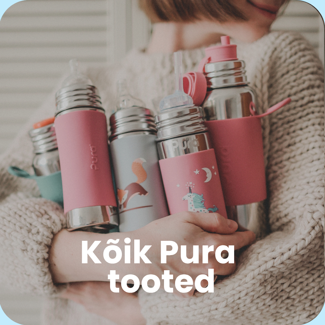Kõik Pura silikoonkaaned sobivad kõigile Pura pudelitele – need on vastupidavad pudelid, mis “kasvavad” koos lapsega! Tänu vahetatavatele otstele saab pudeli hõlpsalt muuta lutipudeliks, joogitopsiks, snäkipurgiks või spordipudeliks.